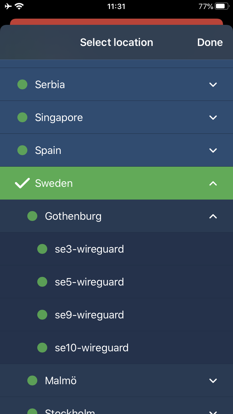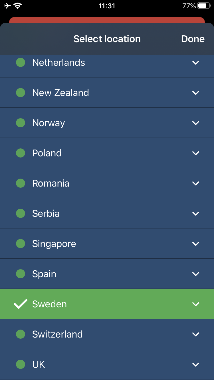 By default, the app will initially connect to a server in Sweden. If you choose a different location, the app will remember your latest selection for the next time you start the app. - You can also verify your connection with our Connection check.