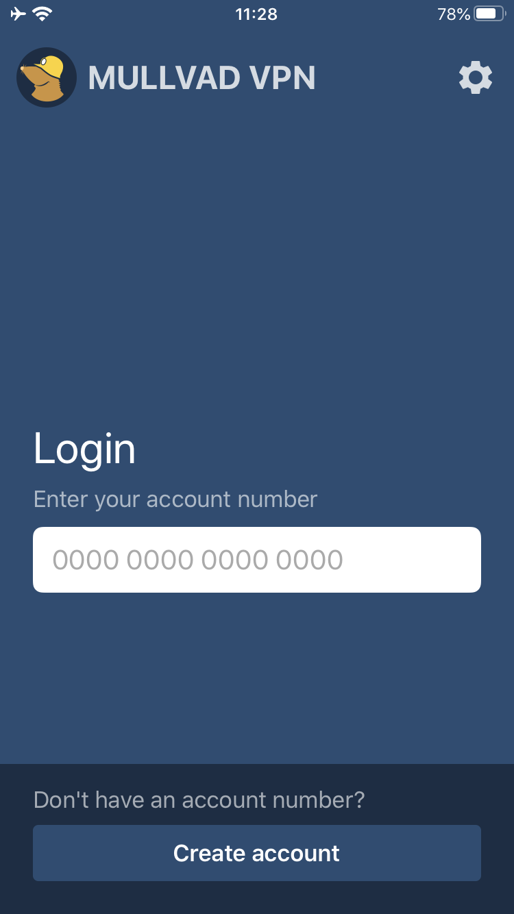 Enter your Mullvad account number, then tap on the green button with an arrow, or tap on the blue Return key on the keyboard. See the FAQ below if you get an error.