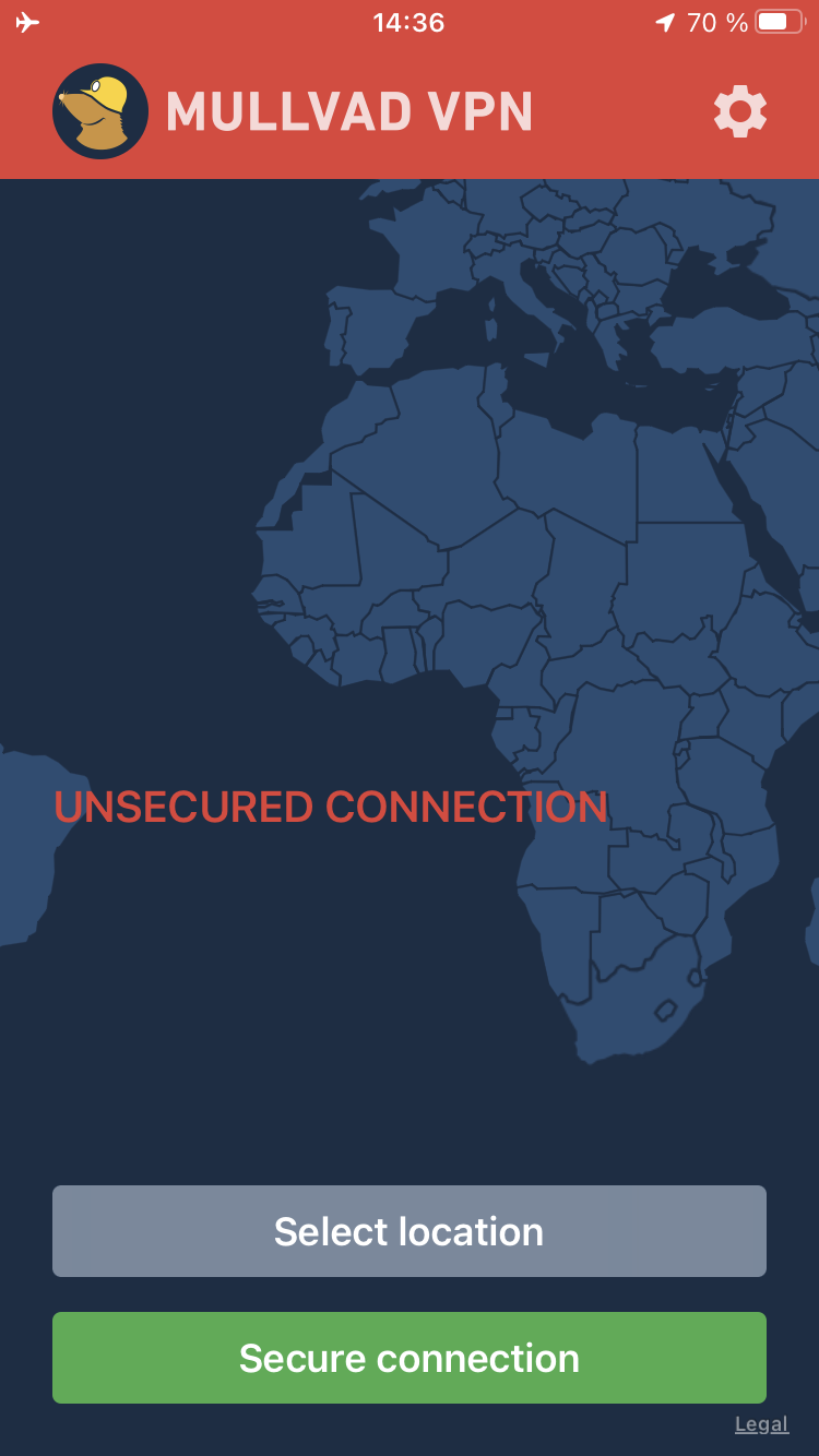 You will see the status of your connection on the app's connection screen. If you are disconnected, the top bar of the app will be red and "Unsecure connection" will be displayed on the connection screen.