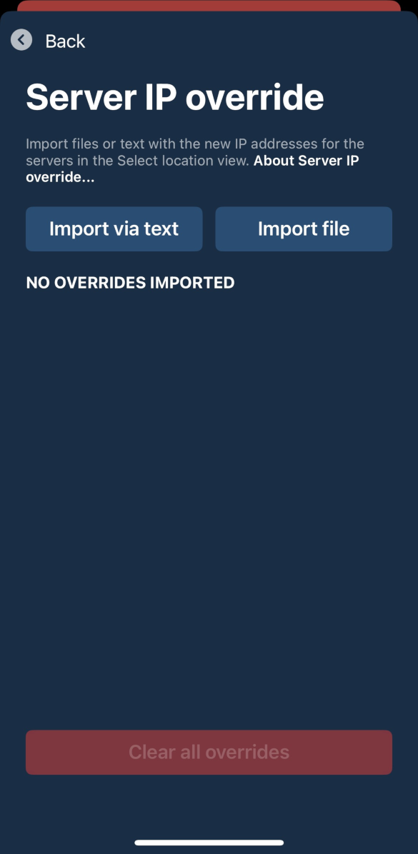 If you are in a restrictive country where our VPN servers are blocked, it may be possible to connect to one using a server entry IP override. This may be provided, if deemed necessary, by Mullvad Support. You can find the e-mail address in the bottom of this website.